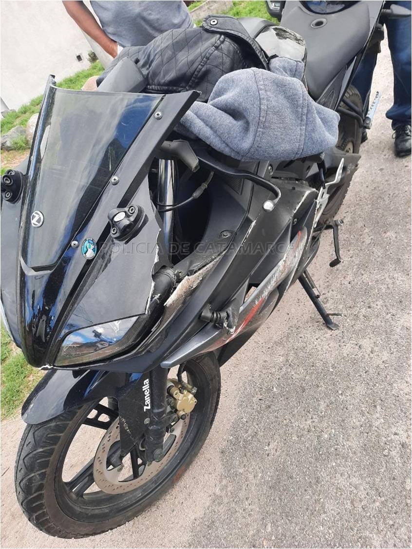 El accidente fue protagonizado por una motocicleta Zanella RZ 225 cc., dominio 783-LBV, de color negro, conducida por Sergio Leonel Brizuela Ordeño (20) que, por razones que se investigan, colisionó con un automóvil Peugeot 208 blanco, dominio AD027IT, al mando de Raúl Ricardo Sánchez (59).