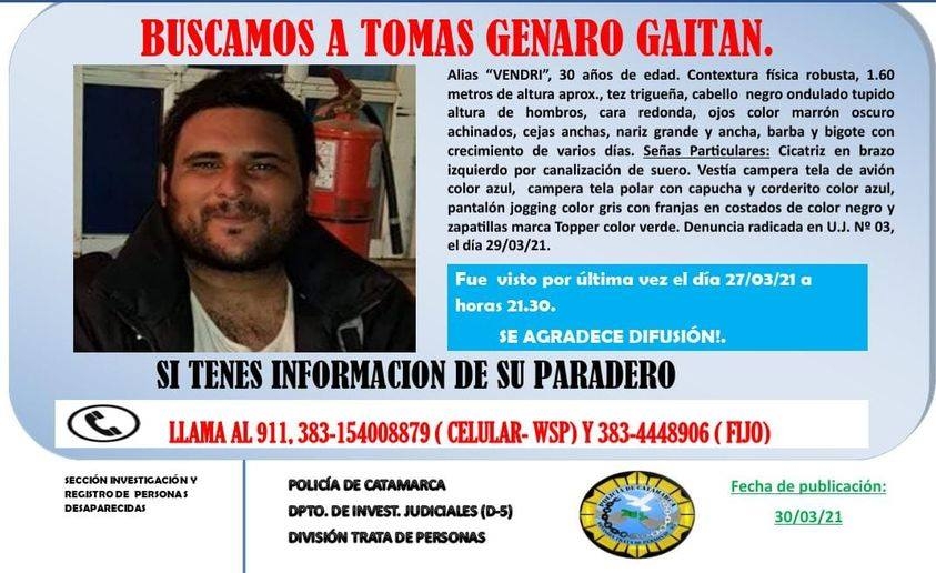 Se trata de Tomás Genaro Gaitán, 30 años, quien se ausentó de su domicilio en el barrio San José, en Banda de Varela de la ciudad Capital.