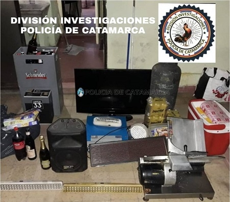 En el lugar y bajo las directivas de la Fiscalía de Instrucción en turno, los investigadores lograron recuperar bebidas alcohólicas, elementos comestibles, tres luces de emergencia, una caja registradora, una conservadora, un parlante SKP, un televisor Samsung, de 32 pulgadas, una cortadora de fiambre, una garrafa de gas, de 20 Kg., un cartel con luces Led, que quedaron en calidad de secuestro a disposición de la Justicia interviniente, desde donde se impartieron las directivas a seguir.