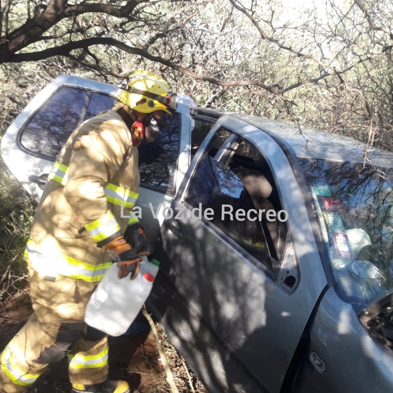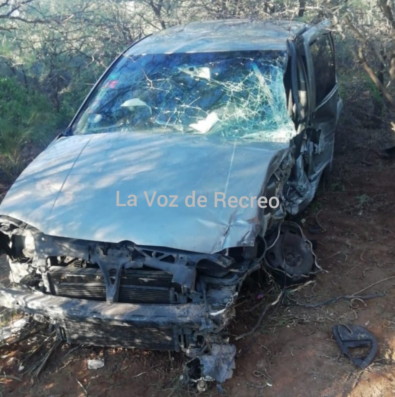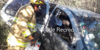 Esto produjo un fuerte derrape y vuelco hacia el lado éste de la ruta, quedando el auto totalmente destruido con el conductor dentro del rodado.