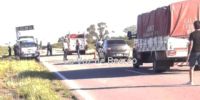 Al no poder evadirlo, el auto colisionó en el lateral, para luego colisionar con el otro camión, que intentaba sobrepasar también.