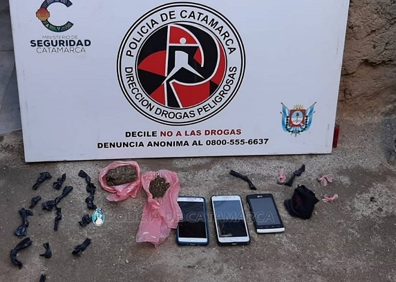 Tras irrumpir en dichos lugares, los Policías procedieron al secuestro de 23 envoltorios de nylon con una sustancia tipo herbácea compuestas por hojas, tallos y semillas trituradas y compactadas, que al ser sometidos a la prueba de campo correspondiente, arrojó como resultado que se tratarían de 77 Gr. de Marihuana, que quedaron en calidad de secuestro, al igual que una dosis de Cocaína, semillas de la variedad Cannabis Sativa, cuatro teléfonos celulares de distintas marcas y modelos, y dinero en efectivo.