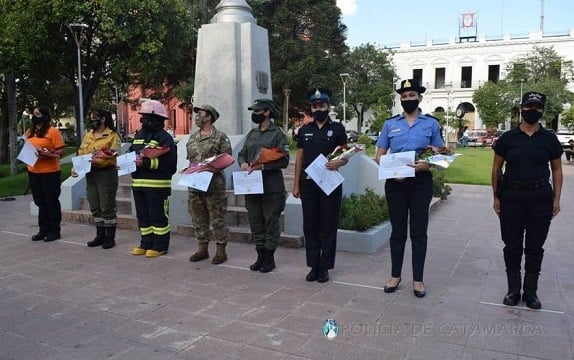 En el mástil de la Plaza 25 de Mayo, se llevó a cabo este lunes un acto en conmemoración a las mujeres en su día, y en la oportunidad se homenajeó a las representantes del Ejército Argentino, Gendarmería Nacional, Policía Federal Argentina, Policía de la Provincia de Catamarca, Maestras de Grados, Enfermeras, Brigadistas Forestales, Defensa Civil, y Bomberos Voluntarios.