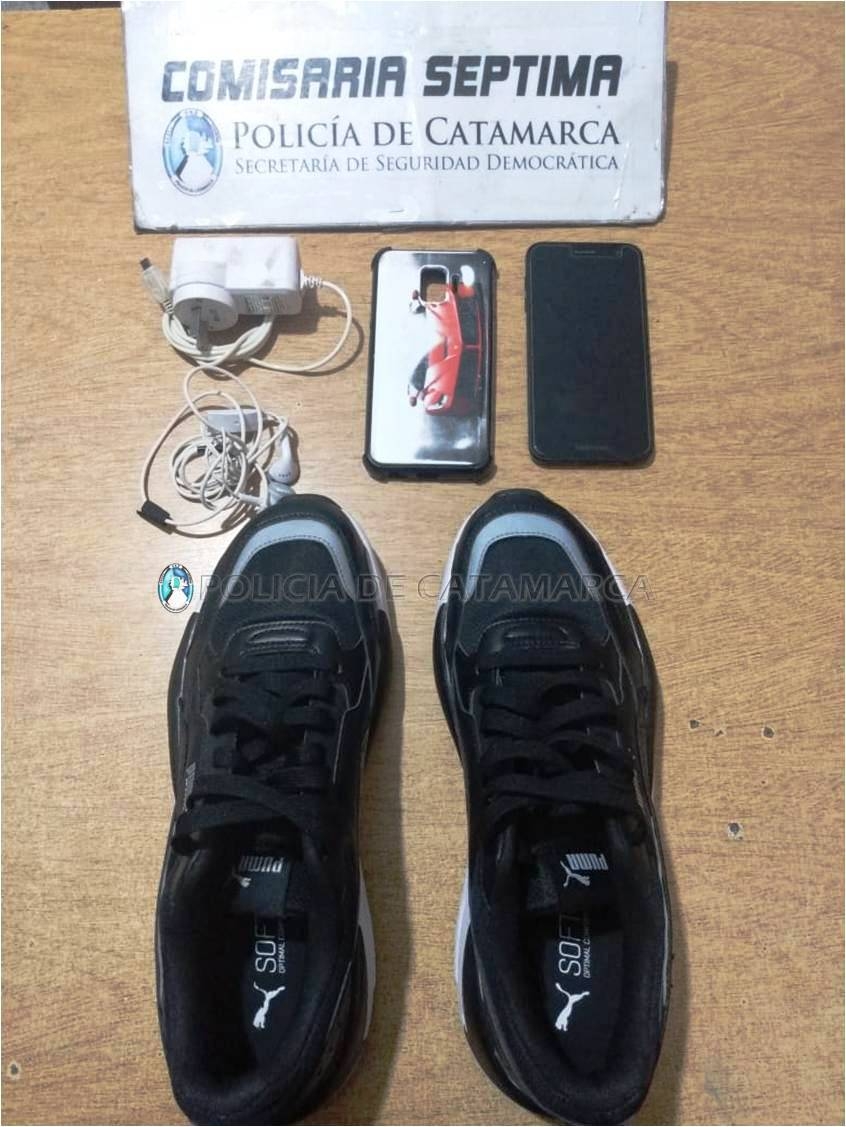 En el lugar, procedió a la aprehensión de un joven de apellido Molas, de 23 años, y al secuestro de un par de zapatillas marca Puma, un teléfono celular Samsung Galaxy J-2, de color negro, un cargador de teléfono y un auricular para teléfono marca Samsung.