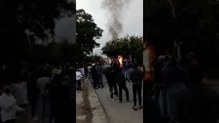 El incendió ocasionó una gran confusión y corridas entre los manifestantes antimineros y los pro mineros .Al lugar llegó la policía para resguardar las instalaciones, mientras los bomberos controlaban las llamas.