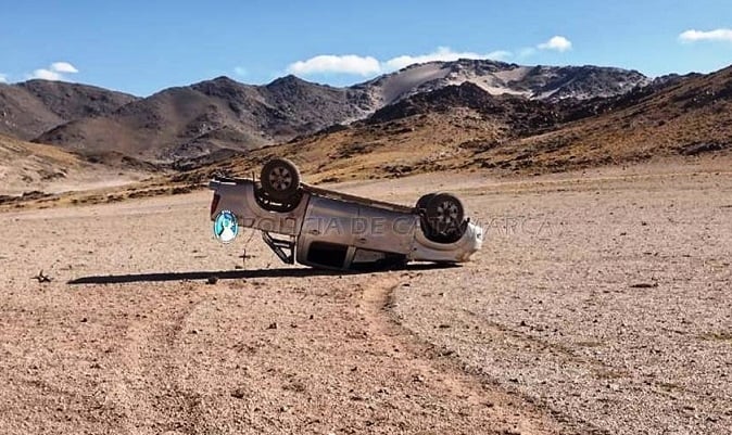 Hoy jueves, a las 16:30, en el Paraje la Ciénaga, departamento Antofagasta de la Sierra, Ramón Nicolás Díaz (40), que circulaba en una camioneta Toyota Hilux gris, en compañía de Roberto Carlos García (40), perdió el control del rodado y volcó a un costado del camino.