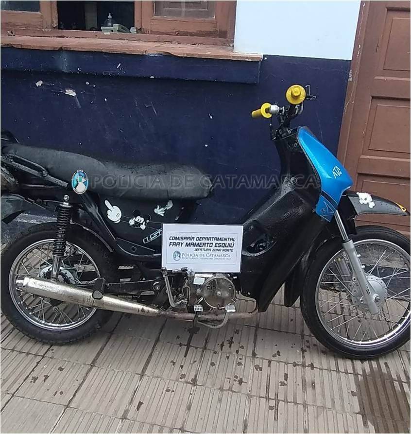 Cabe señalar que, personal de la Departamental Fray Mamerto Esquiú incautó una motocicleta Corven Energy 110 cc., de color azul, en la que circulaba un joven de 25 años, a quien al solicitarle la documentación del rodado, habría exhibido una cédula verde en la cual no coincidían los datos consignados del vehículo, por lo que el rodado fue trasladado a la dependencia policial.