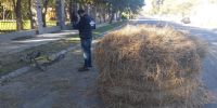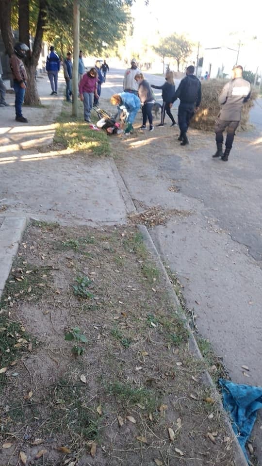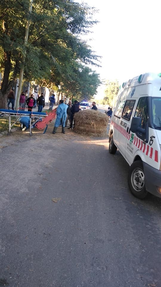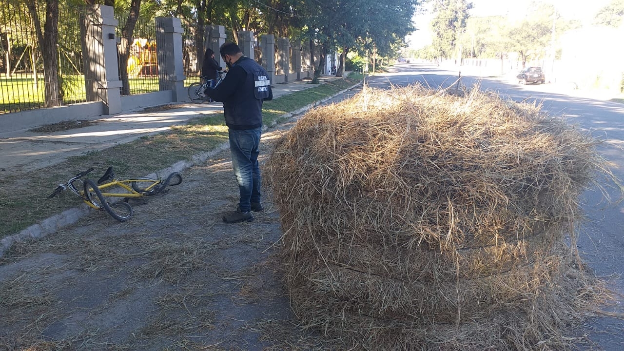Uno de los fardos de pastura cayó sobre una mujer, identificada como Mónica Carrizo, quien se trasladaba en una bicicleta.