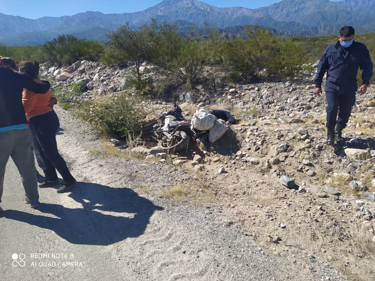 Según se pudo conocer, la víctima de unos 60 años cargaba una bolsa con nueces, y al llegar una curva donde había un banco de arena, terminó derrapando.