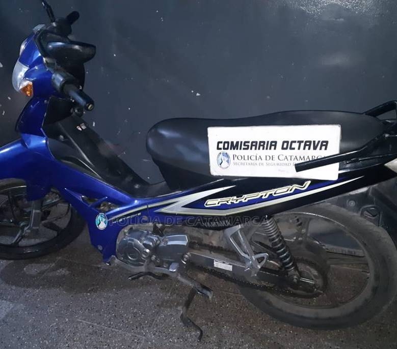 Luego de realizar averiguaciones, efectivos de la Comisaría Octava conjuntamente con sumariantes del Precinto Judicial N°8, se constituyeron en una vivienda del barrio La Esperanza, donde materializaron un registro domiciliario logrando recuperar una motocicleta Yamaha Crypton 110 cc. azul, la cual le habría sido sustraída horas antes a su propietario, un joven de 27 años, de la calle Ayacucho al 200, como así también incautaron una rueda de vehículo, una luneta de automóvil con dos parlantes de color negro, una llave cruz y un gato hidráulico, hasta lograr establecer su legítima propiedad y procedencia.