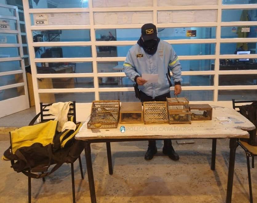 Luego de inspeccionar el vehículo, los policías observaron que esta persona trasladaba en el interior de un bolso con cinco tramperas y 12 aves canoras de distintas especies que quedaron en calidad de secuestro.