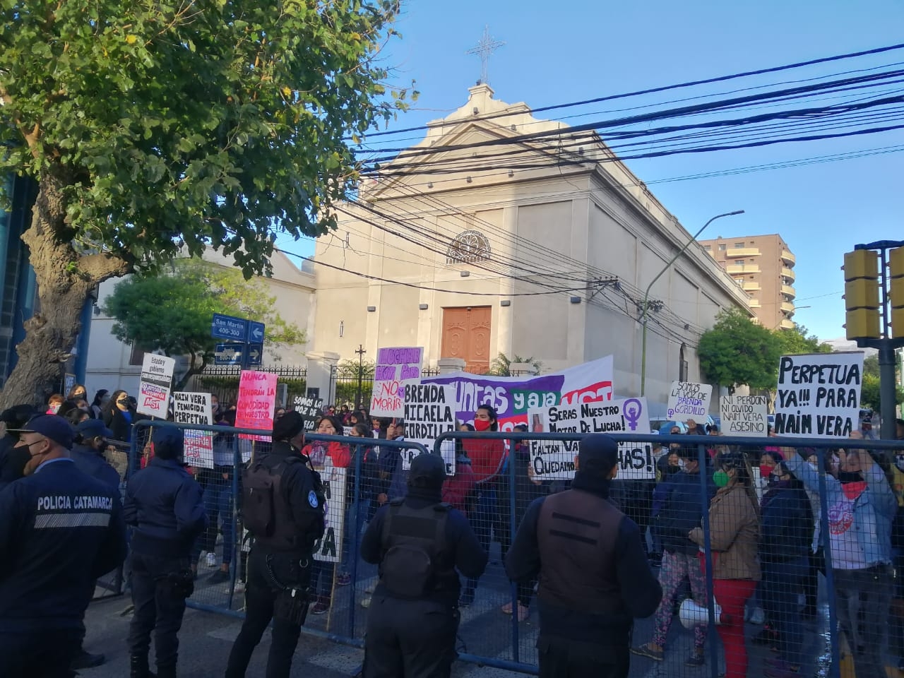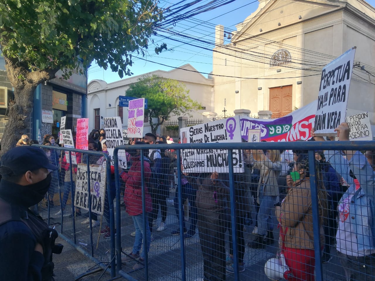 Con carteles y banderas, las personas que acompañaron todo el proceso del juicio y los reiterados reclamos de justicia, volvieron a estar presentes en la recta final del juicio contra Naim Vera por el femicidio de Brenda Gordillo.