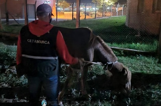 A través de una ardua tarea investigativa, personal de la División Abigeato de la Policía de la Provincia se constituyó en un domicilio ubicado en la esquina de la Avenida Maximio Victoria y Pasaje El Canillita de esta Ciudad Capital, donde se entrevistó con un hombre de 61 años, quien hizo entrega voluntaria del animal, que quedó en calidad de secuestro, manifestando que lo habría adquirido en buena fe.