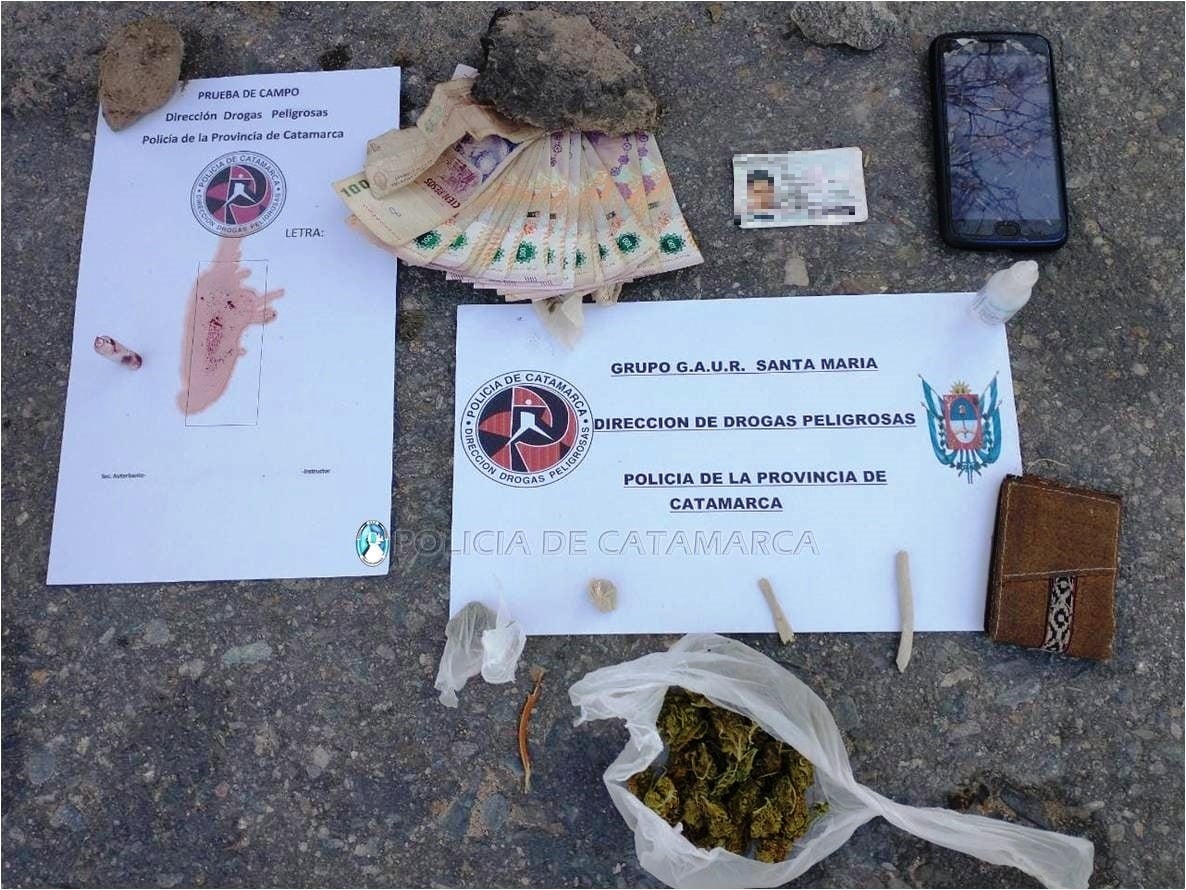 Al momento de realizarle la requisa correspondiente, los policías encontraron entre sus pertenencias un envoltorio de nylon que en su interior contenía una sustancia tipo herbácea, dos cigarrillos de armado casero de la misma sustancia, un teléfono celular Motorola y dinero en efectivo, que quedaron en calidad de secuestro a disposición del Juzgado Federal, desde donde se indicaron las medidas a seguir.