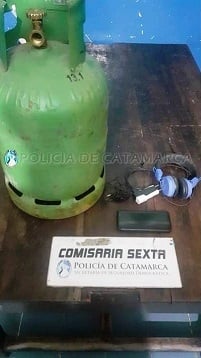 Al momento de ser identificado, los policías observaron que se trataría de una garrafa de gas, de 10 kg., una mochila que contenía un celular Samsung S8 negro, un par de auriculares y un cargador, de los cuales no supo acreditar la procedencia, por lo cual quedaron en calidad de secuestro.