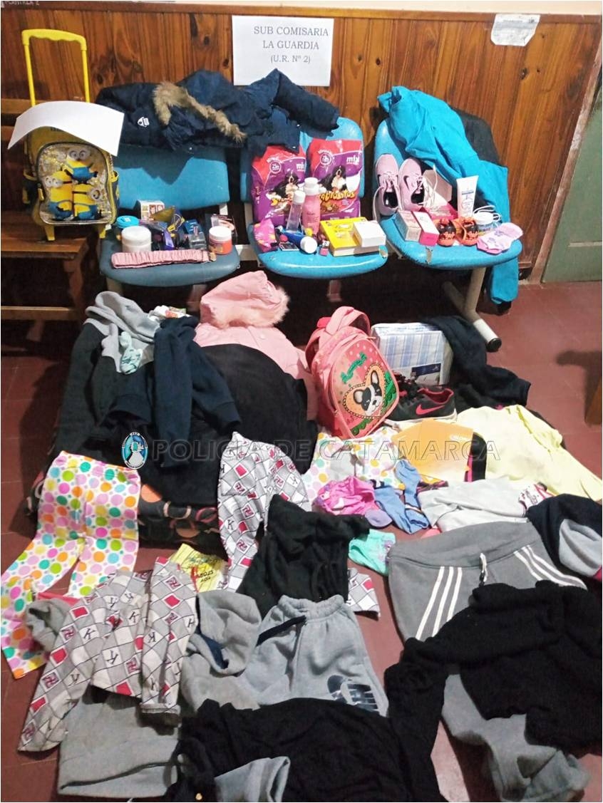 Sobre esta persona obraba un requerimiento judicial dispuesto por la Fiscalía de la Sexta Circunscripción Judicial, como así también incautó diversas prendas de vestir para niño y adulto, elementos de librería, ropa de cama y perfumes.