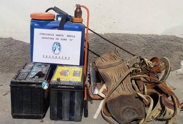 Tras realizar tareas investigativas, efectivos policiales se constituyeron en una casa en construcción ubicada en el loteo Alto La Viña, de la localidad La Soledad, donde lograron recuperar una mochila fumigadora azul, una montura con sus respectivos correajes y cinchas, y dos baterías para automóvil, que quedaron en calidad de secuestro, a disposición de la Fiscalía de la Cuarta Circunscripción Judicial, desde donde se impartieron las medidas a adoptar.