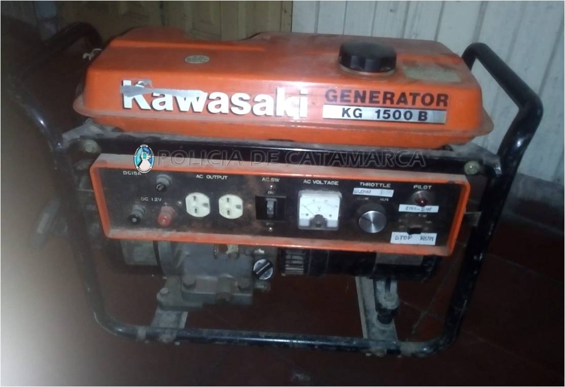 Efectivos de la Comisaría Departamental Tinogasta procedieron al secuestro de un grupo electrógeno Kawasaki KG 1500 B, de color anaranjado, el cual fue entregado de manera voluntaria por un hombre de 49 años, quien manifestó haberlo adquirido de buena fe.