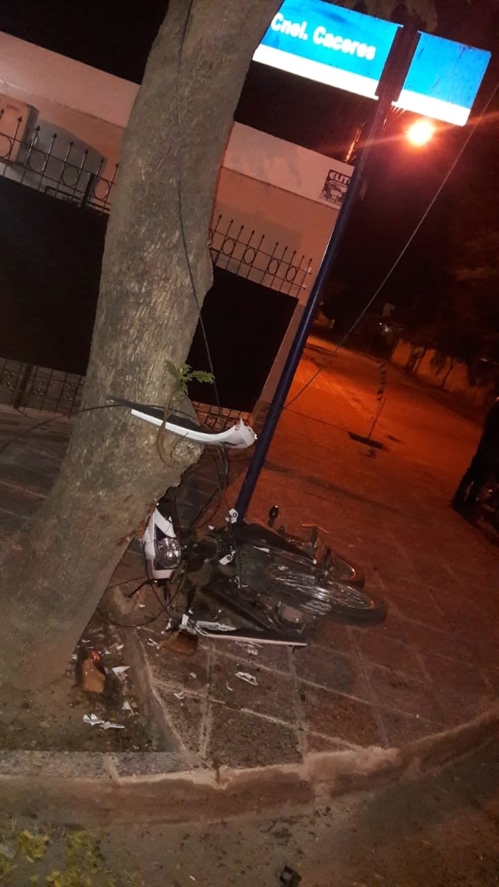 La mujer fue víctima de dos sujetos a bordo de una motocicleta y habrían intentado arrebatarle la cartera, mientras ella se conducía a bordo de su moto. En ese momento, quiso escapar y terminó impactando contra un poste.