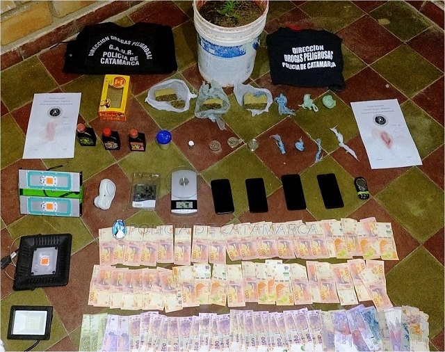 También se incautaron 96 semillas de la variedad Cannabis Sativa, un plantin de la misma especie, tres potes de fertilizante para éstas, una balanza digital, un picador de metal, cinco teléfonos celulares, la suma de $50.900 en efectivo, discriminados en billetes de distinta denominación, tres reflectores Led, un temporizador, un termómetro de ambiente digital y una estructura de armado casero construido de cartón prensado, revestido en su parte interior con papel aluminio comúnmente conocido como Indoor cultivo.