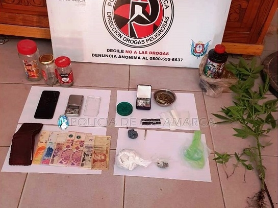 Tras irrumpir en la vivienda, los uniformados procedieron al secuestro de una balanza digital, un frasco de vidrio con fertilizante, un teléfono celular, un triturador, tres frascos de vidrio conteniendo restos de una sustancia tipo herbácea, una planta y cinco plantines de Marihuana, varias de semillas de la variedad Cannabis Sativa, como así también incautaron tres envoltorios de nylon conteniendo en su interior una sustancia tipo herbácea compuesta por hojas, tallos y semillas, que al ser sometida a la prueba de campo correspondiente arrojó que se tratarían de 25 Gr. de Marihuana.