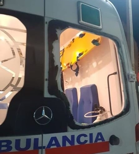 Los profesionales médicos lo atendían adentro de la ambulancia, y en un momento, se resistió a ser intervenido por las enfermeras, se bajó del vehículo y arrojó una piedra contra la ambulancia que terminó impactando contra uno de los vidrios.