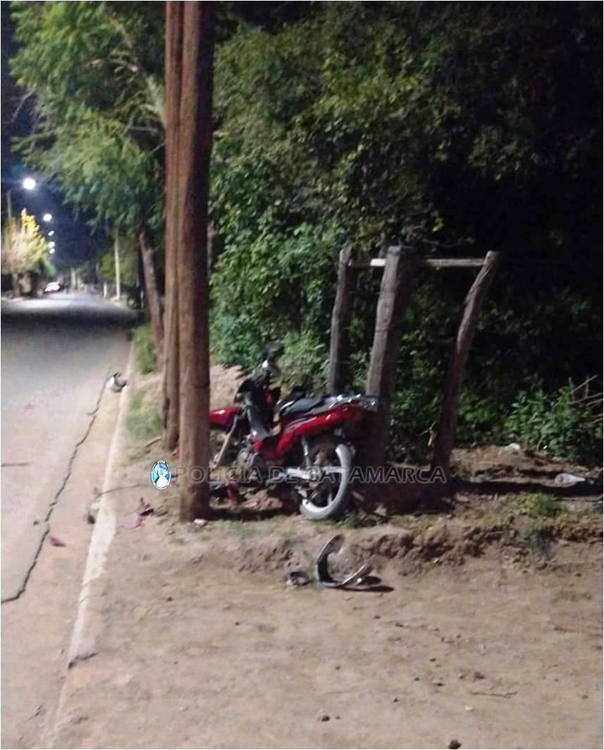 Una adolescente de 17 años circulaba al mando de una motocicleta Honda Wave 110 cc., dominio 104–IFF, de color rojo, acompañada por un jovencito de 15 años, y por razones que se tratan de establecer, perdió el control del rodado y chocó contra un poste del tendido eléctrico.