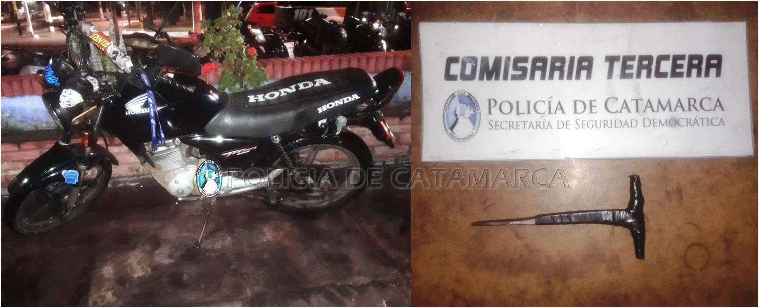 En ese momento, emprendieron a la fuga en una motocicleta Yamaha CG Titán 150 c.c., de color negro, siendo interceptados a escasos metros por personal policial. Cabe destacar que, al momento de realizar la requisa correspondiente, los policías encontraron entre sus pertenencias un elemento punzante conocido comúnmente como espadita.