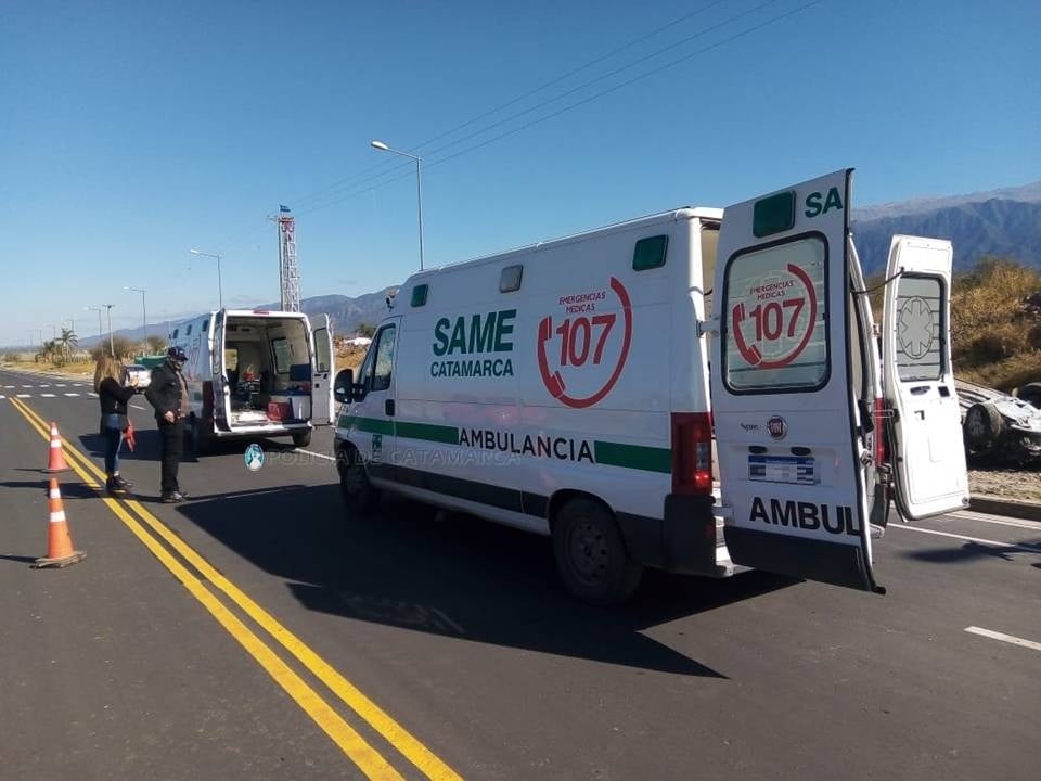 Francisca Maldonado (55) circulaba al mando de un automóvil Ford Ka, dominio LML-584, de color negro, acompañada por María Victoria Maldonado (75) y dos niñas de 5 y 6 años, y por razones que se tratan de establecer, perdió el control del rodado y volcó a un costado de la calzada.