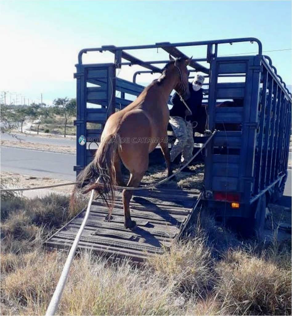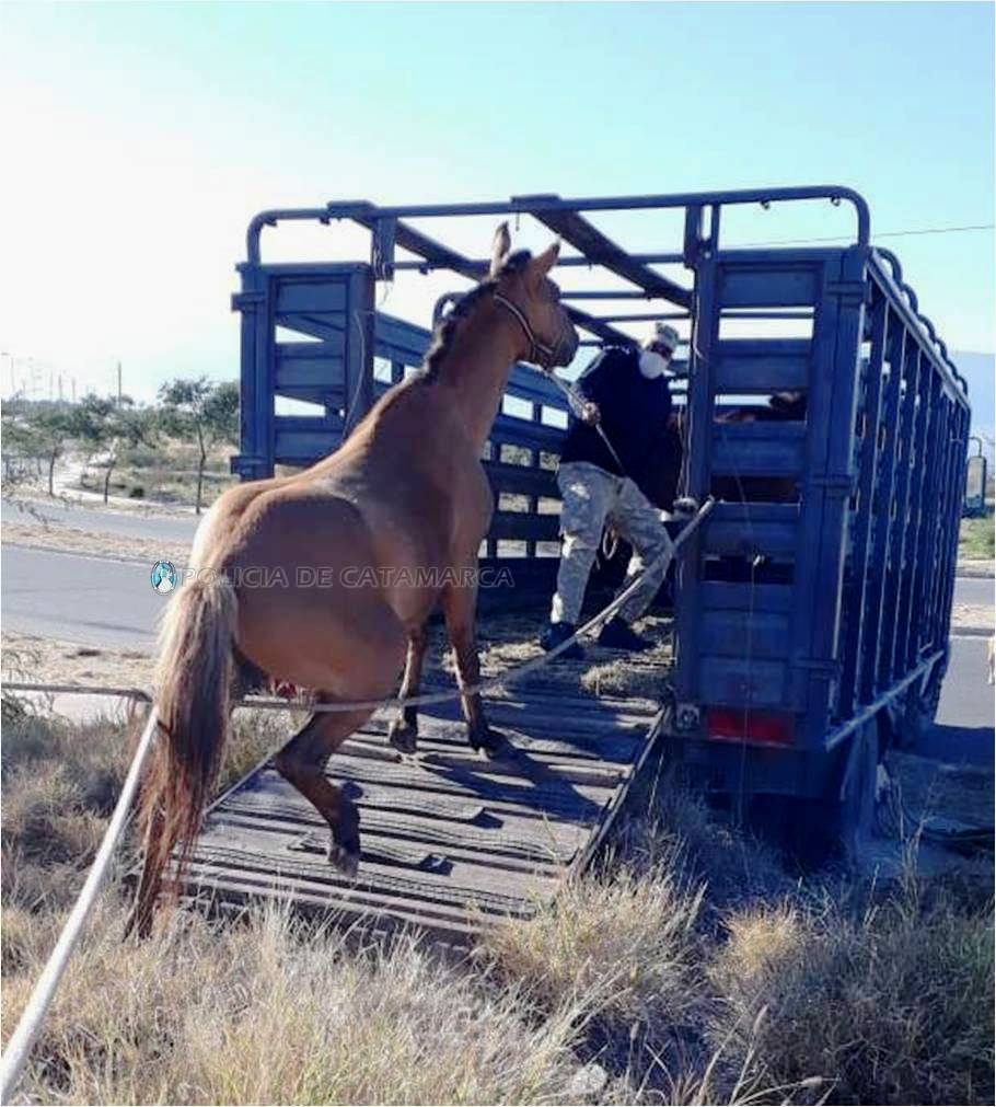 En la oportunidad, procedieron al secuestro de un caballo, castrado, pelaje bayo gateado, crin corta, con marca de fuego no legible, una yegua pelaje doradillo, miembro posterior izquierdo blanco, con marca de fuego no legible y un potrillo al pie, pelaje zaino colorado, sin marca de fuego.