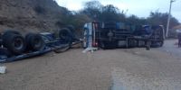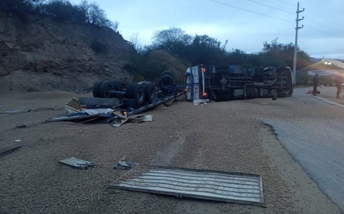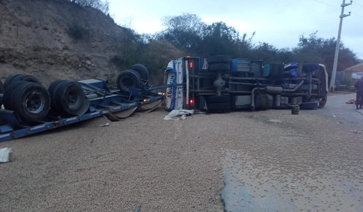 Hoy a las 07:30, en la ruta nacional N° 38 a la altura de la rotonda de ingreso a la localidad de la Merced, Departamento Paclin, se registró un siniestro vial protagonizado por un camión Scania T112 con acoplado, dominio RXL149, de colores blanco y azul, que transportaba Pellets afrechillo de trigo, al mando de Néstor Luis Ehrentraut (58) oriundo de la provincia de Salta, que por razones que se tratan de establecer perdió el control del rodado y terminó volcando a un costado de la banquina.
