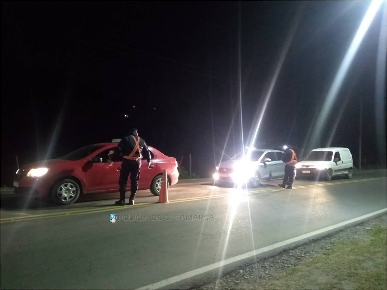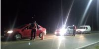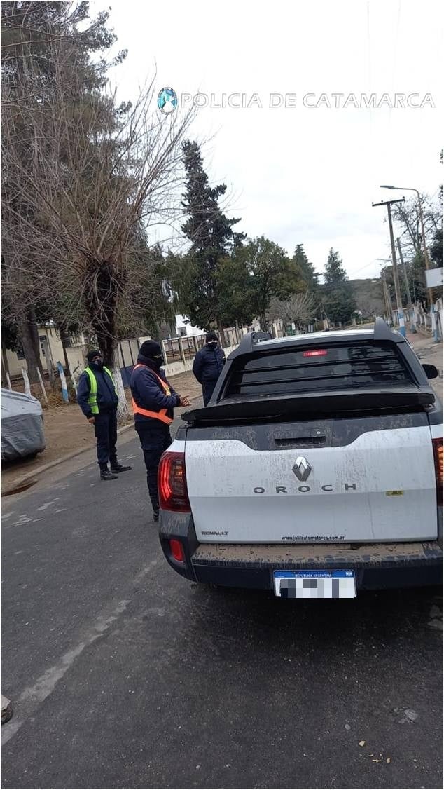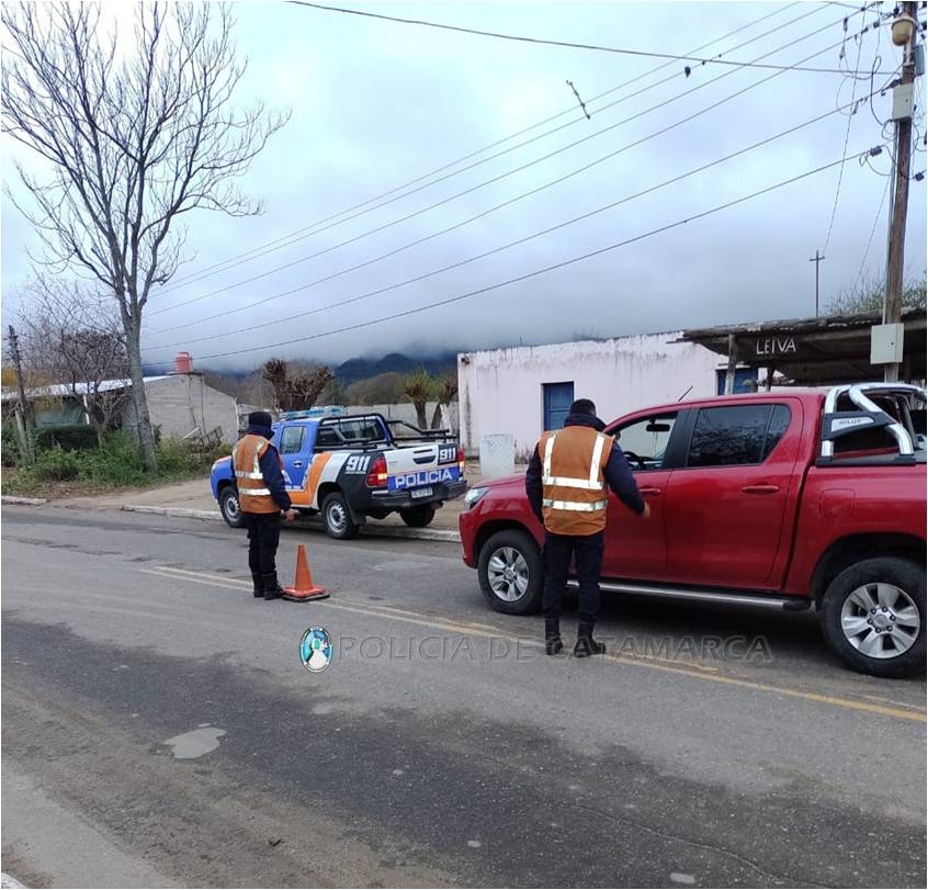 En otro hecho ocurrido el sábado, a las 23.30, alertados por un llamado telefónico, efectivos de la Subcomisaría de San Pedro se constituyeron en inmediaciones a una finca, de esa localidad del departamento Santa Rosa, y procedieron a notificar a un joven de 23 años y a un hombre de 31 años, quienes circulaban en un automóvil Seat, de color rojo, fuera del horario establecido y permitido.