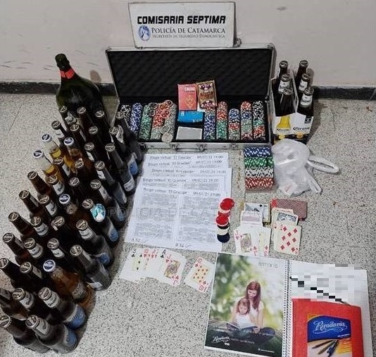 Se procedió a su aprehensión y se los traslado a dependencias policiales, donde aún permanecen alojados a disposición de la Fiscalía de Instrucción actuante. Así también incautó un estuche de aluminio plateado que contenía en su interior fichas de póker y distintos naipes de tipo francés, dos cuadernos tapa dura con hojas rojas, seis (06) hojas de bingo A-4, seis (06) vehículos, bebidas alcohólicas y dinero en efectivo.