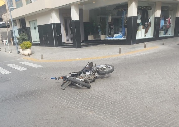 Utilitario chocó contra una moto en pleno centro