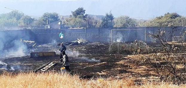 En el lugar, los policías constataron que, por razones que se tratan de establecer el foco ígneo se habría originado por una quema de pastizales presentes en el lugar.