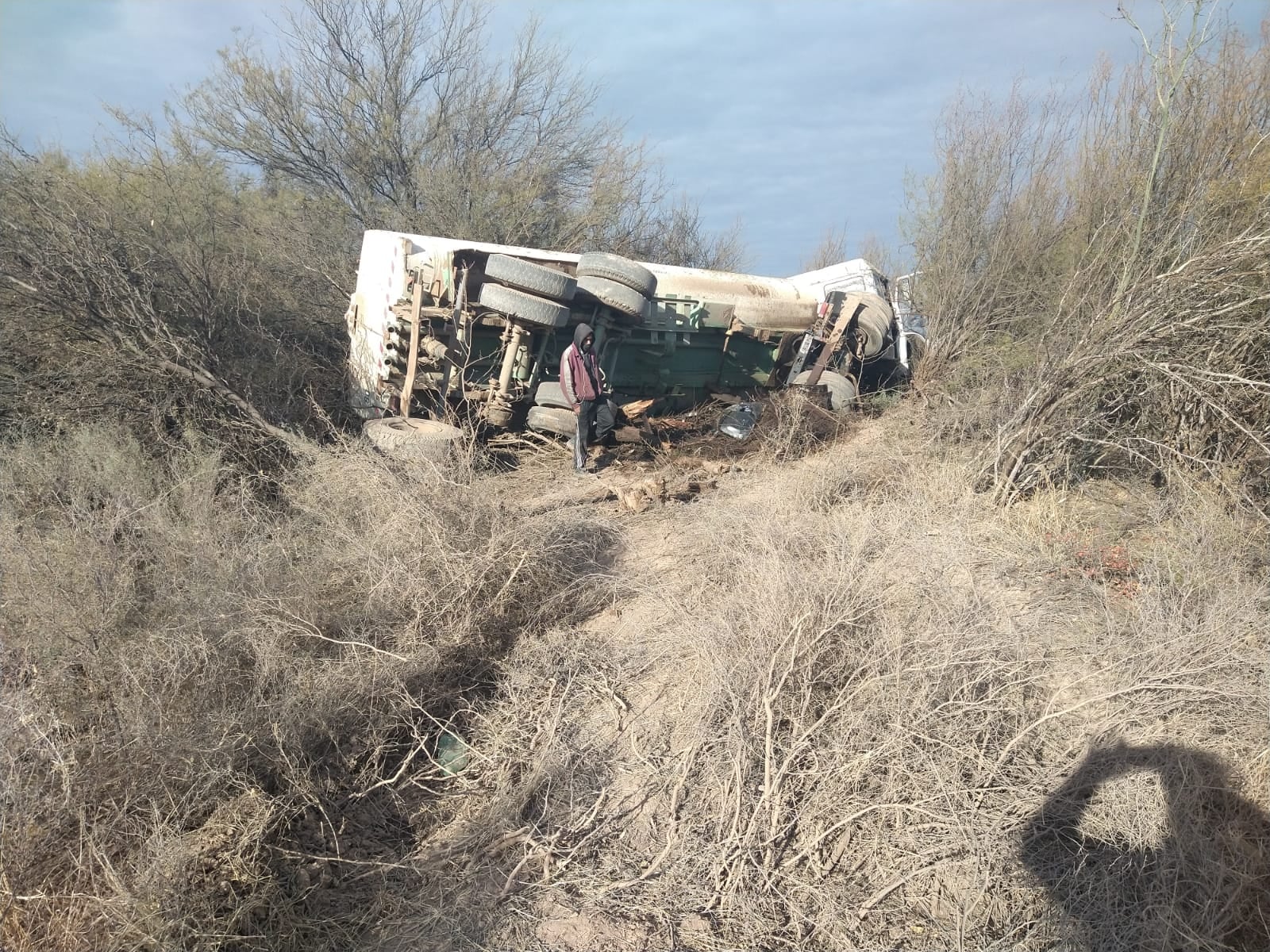 En la mañana de este 9.45, en la ruta nacional N° 60, a la altura del Km., N° 1000, de la localidad de San Martín, Departamento Capayán, se registró un siniestro vial protagonizado por un camión cisterna Mercedes Benz, dominio BJB-616, al mando de Lucas Emanuel Rodríguez (26), quien por motivos que son materia de investigación perdió el control del rodado y volcó a un costado de la banquina.