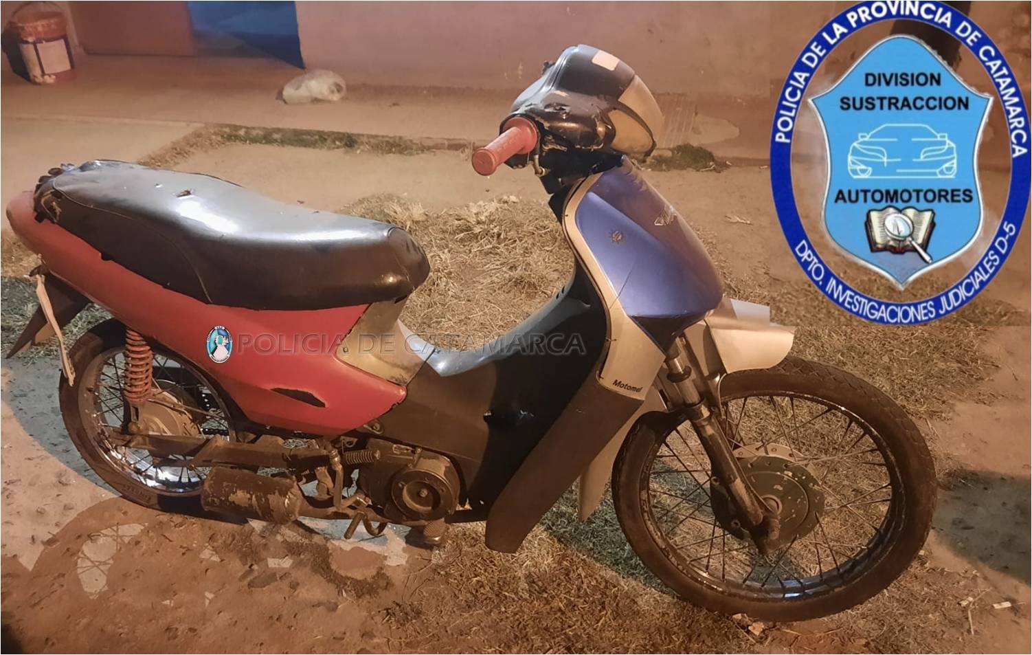 En el lugar, controlaron una motocicleta Motomel B 110 cc., de colores azul y rojo, que estaba en calidad de secuestro.