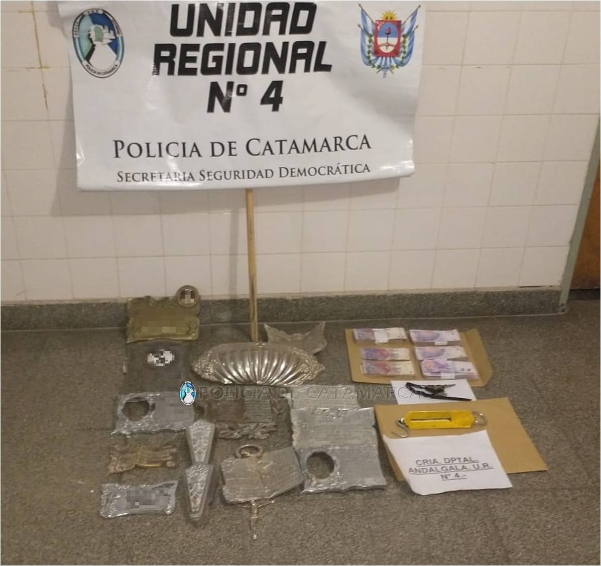 E que luego de inspeccionar el rodado, los policías encontraron 15 placas de bronce, que habrían sido sustraídas del cementerio local, y que quedaron en calidad de secuestro, al igual que la suma de 43.320 pesos en efectivo, una balanza metálica y el vehículo en el que circulaban.