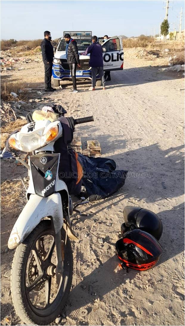 En el lugar, procedió al arresto de dos sujetos de apellidos Sansone (23) y Ahumada (30), quienes se conducían a bordo de una motocicleta Yamaha Crypton 110 cc., de colores blanco y negro, que fue incautada, trasportando nueve tramperas, con un ejemplar de reina mora, dos amanzadores, tres cabecitas, dos jilgeros, una brasita, que quedaron en calidad de secuestro.