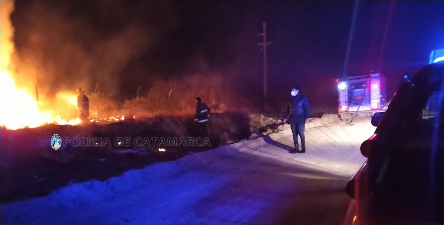 En el lugar, los policías constataron que, por causas que se tratan de establecer, el foco ígneo se habría originado en unos pastizales existentes en la zona.