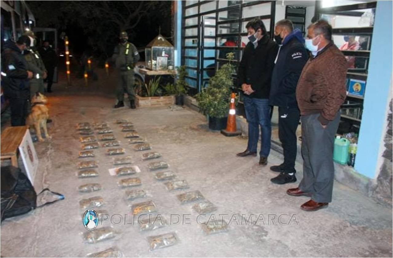 Luego de realizar tareas inherentes a su especialidad, el can detector de narcóticos de nombre "Apolo", logró detectar que entre las pertenencias de una persona de sexo masculino de 29 años se hallaba oculta una gran cantidad de sustancia estupefaciente transportada en un bolso alojado en la bodega del micro.