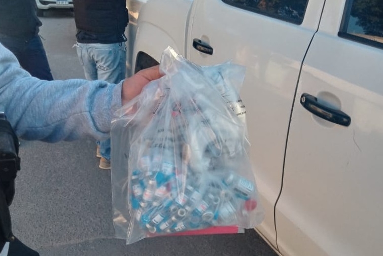 Un operativo anti drogas realizado esta tarde en la zona Norte de la Capital, arrojó como sorpresa el hallazgo de más de 60 frascos similares a los de las vacunas contra el Covid-19, según confirmó el propio Jefe de Policía, Angel Aguero a Radio Valle Viejo.
