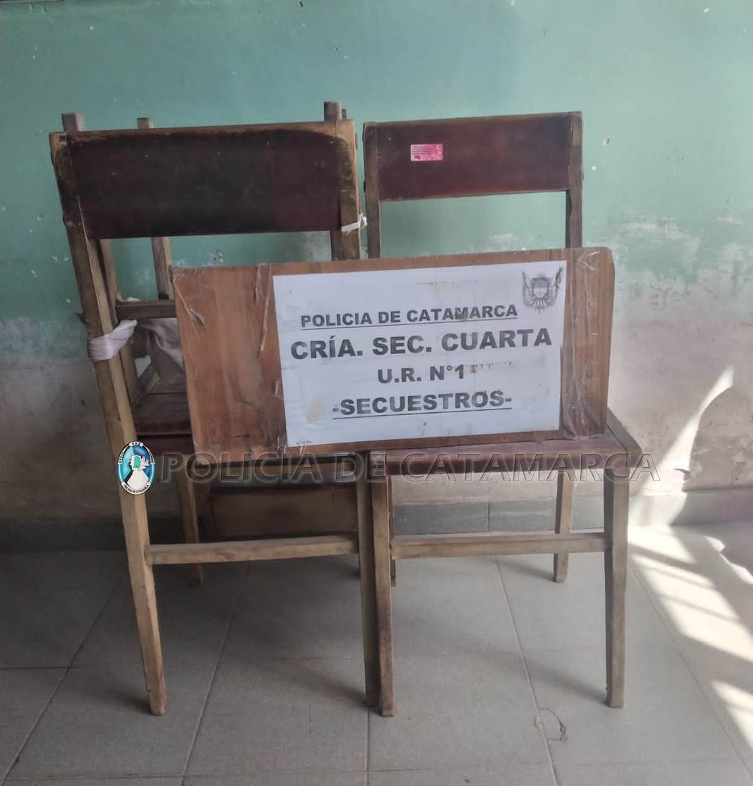Inmediatamente, se procedió a la aprehensión de un hombre de apellido Fernández (56) y al secuestro de tres sillas de madera de color marrón.