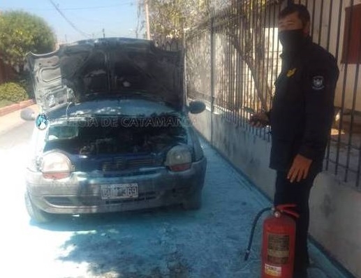En el lugar, los Policías constataron que un automóvil Renault Twingo, de color violeta, propiedad de una mujer de 29 años, por causas que se investigan se habría prendido fuego en la parte delantera del motor.