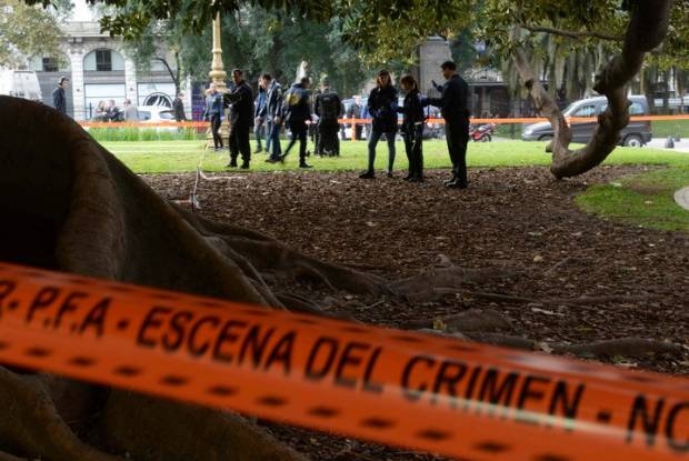 A las 6.50 h pasaron por segunda vez por delante de un Volkswagen Vento estacionado sobre avenida de Mayo, entre Luis Sáenz Peña y Virrey Ceballos. Allí les efectuaron varios disparos.