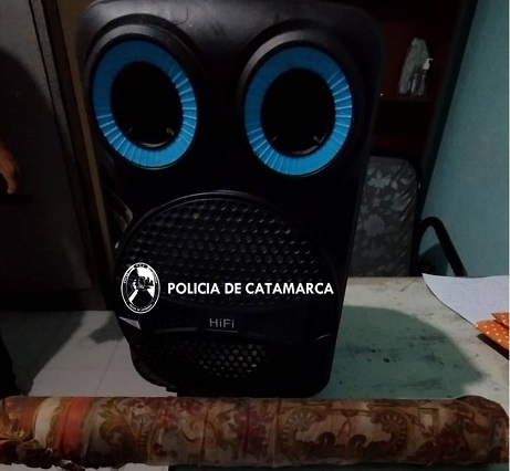 Continuando con las tareas investigativas, a las 13:10, los efectivos materializaron un registro domiciliario en un inmueble del barrio San José, propiedad de Arévalo, donde incautaron un elemento que tendría relación con la denuncia de los agredidos, al igual que un parlante portátil negro, que estaría vinculado a otro ilícito.