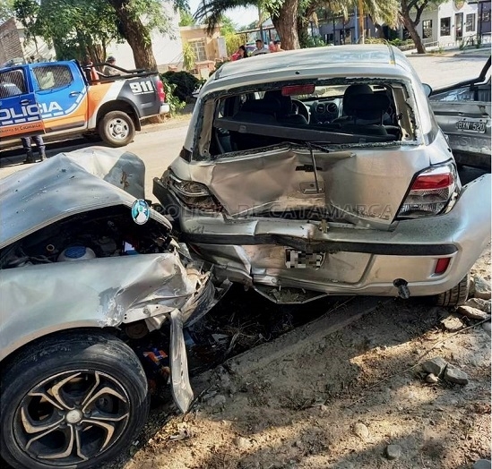 Según información enviada por la Policía de la Provincia, hoy miércoles, a las 9, en la intersección de Avenida Enrique Ocampo y calle Francisco Moreno, Mariano José Farías (44), que circulaba en VW Golf chocó contra un Chevrolet Agile gris que estaba estacionado, que su vez, impactó con una VW Saveiro, que también estaba estacionada.