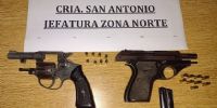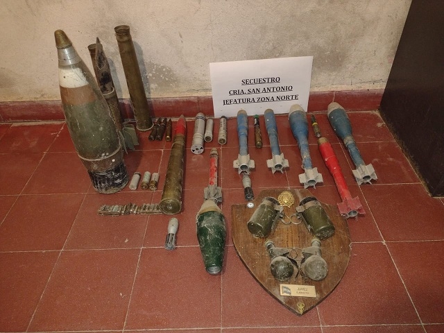 Según informó la policía, en el lugar secuestraron 1 revolver Galand M.R, calibre 22 mm., con 8 cartuchos; 1 pistola Bersa, calibre 22 mm., con 10 cartuchos; 5 granadas de mano; 1 tiro de artillería antiaérea; 5 granadas de fusil; 1 cuerpo de proyectil de 20 ml antiaéreo sin espoleta; 4 sub-calibres de morteros; 1 ojiva sin empenaje; 2 vainas de latón para artillería antiaéreas; 1 empenaje con aletas estabilizadora; 1 proyectil de artillería; 1 artefacto no reglamentario en su parte posterior con espoleta; 1 cuerpo tubular color rojo y aleta estabilizadora negra.