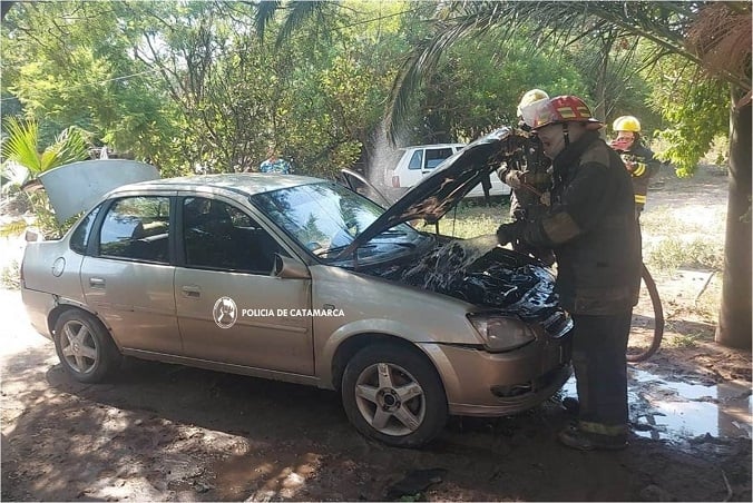 Por causas que son materia de investigación, el foco ígneo se habría originado por desperfectos mecánicos, en virtud de lo cual los Policías solicitaron la colaboración de sus pares de la Dirección Bomberos de la Policía de la Provincia, quienes conjuntamente con Bomberos Voluntarios del mencionado Departamento, realizaron las tareas de rigor y lograron sofocar las llamas, que ocasionaron daños materiales parciales en el rodeado.