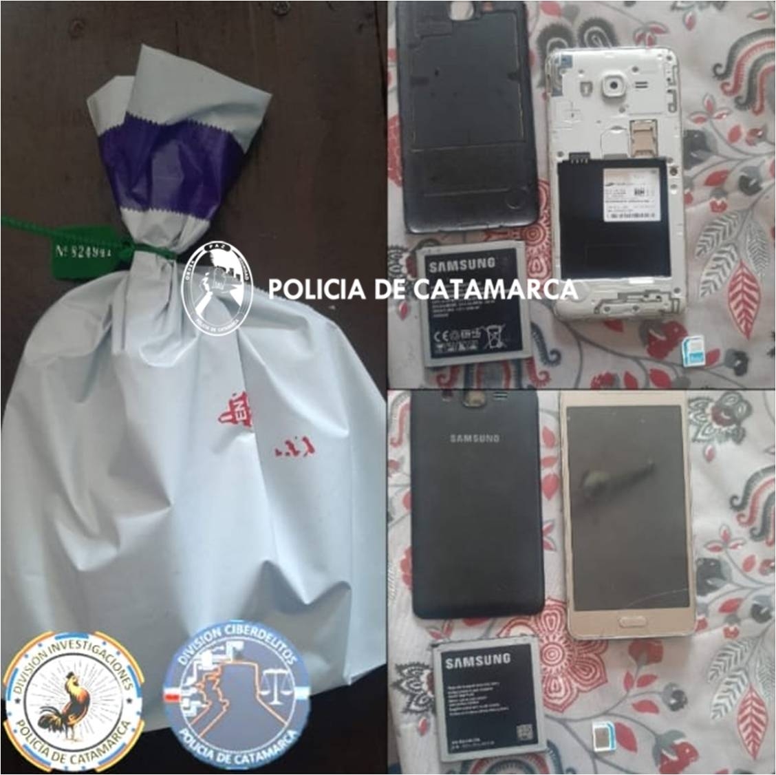 En un domicilio del barrio Municipal, de la localidad de Nueva Coneta, Capayán, los policías con colaboración de sus pares de la División Investigaciones secuestraron dos dispositivos de telefonía celular; uno marca Samsung J7, de color negro, habilitado con la línea ligada directamente con la causa que se investiga, y el restante u Samsung modelo J2, de color gris, el cual también tendría relación a la presente causa.